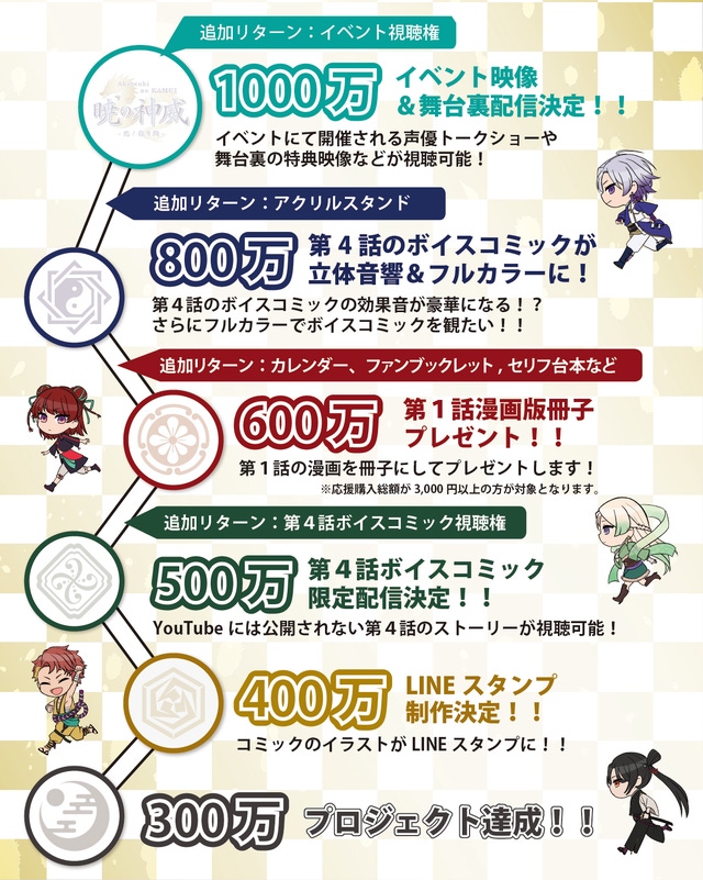 そして声優キャスト・制作チーム・ファンの皆様が一体となってこの作品を盛り上げていくイベントを開催するためにこの応援プロジェクトを企画いたしました。