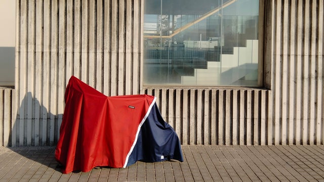自転車カバーの課題は「かけにくさ」。最初はきちんとカバーして保護するものの、次第に面倒になり…かけるのをやめ…いつしか自転車はホコリまみれ。ピカピカだったチェーンも錆びて赤褐色に…。