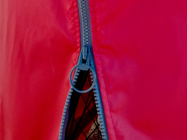 パーツ替え用の後輪側のファスナーは防水ファスナーを採用しています。完全防水ではありませんが、防水ファスナーの上にもホワイトラインのファスナーカバーを取り付けています。