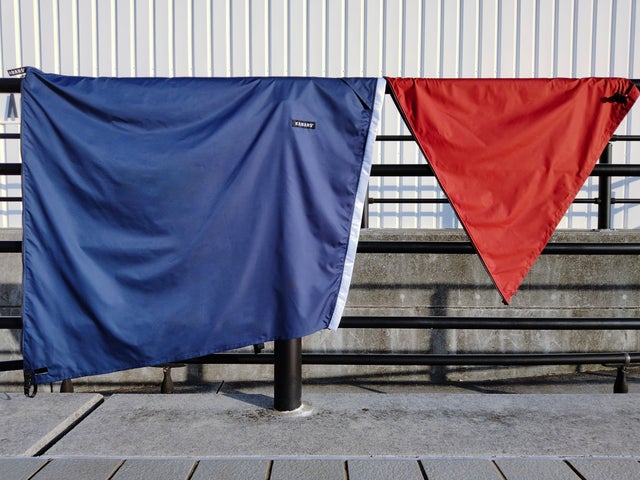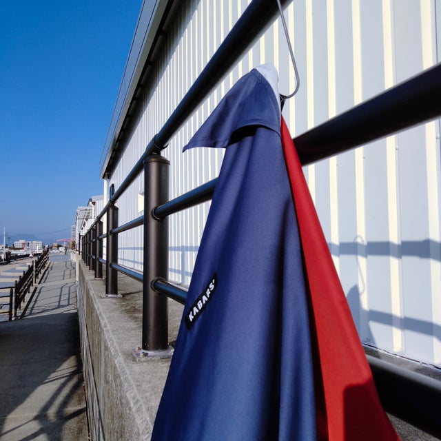 バックルを上手に使えば風で飛んでいきません。アイロンも当て布をし、低温設定でご使用頂けます。(※ネームやファスナー等の布以外の部分のアイロンは避けてください)