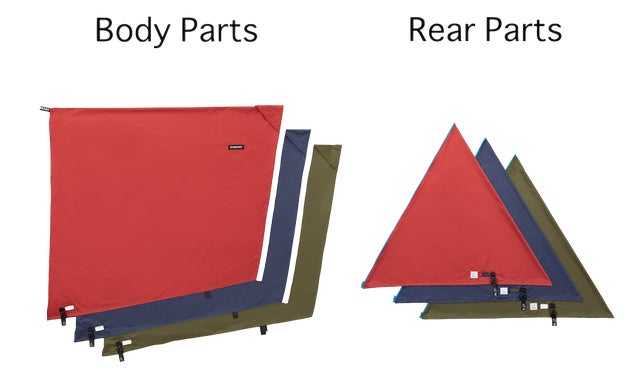 白いライン部分のファスナーで前後のパーツを外し、別のカラーに交換できます。