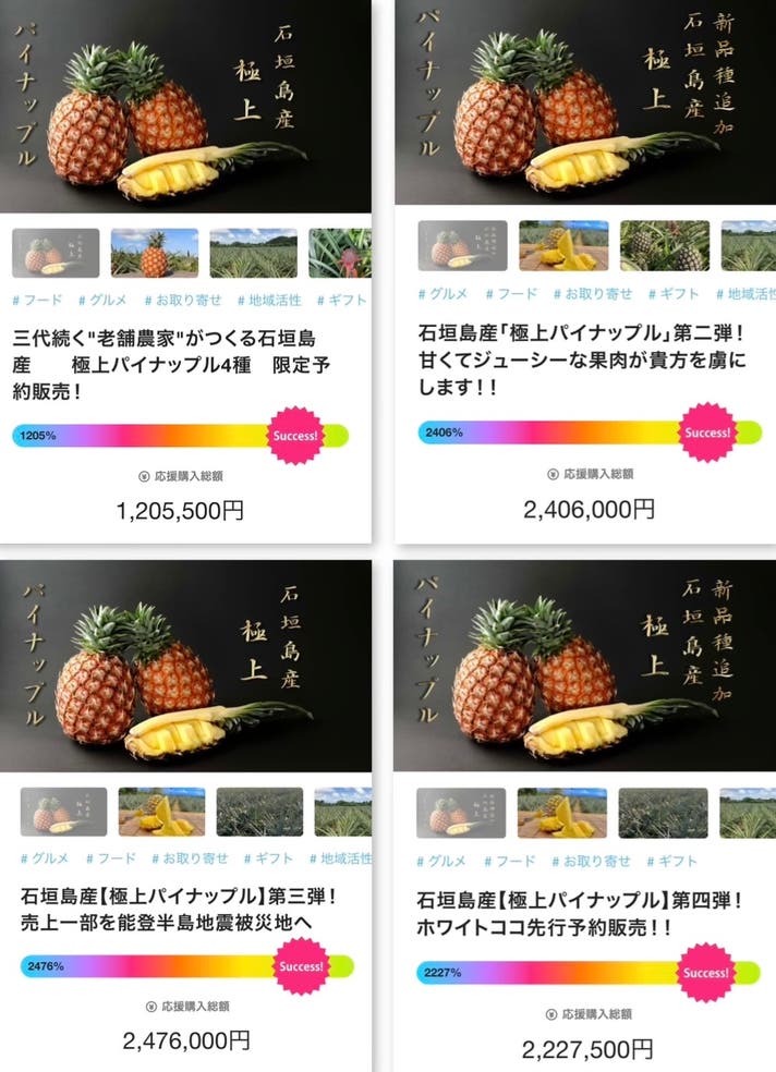 前回Makuakeにて「石垣島産【極上パイナップル】第四弾!ホワイトココ先行予約販売!!」プロジェクトを行い多くの方々に応援購入、応援コメントをいただきました。
