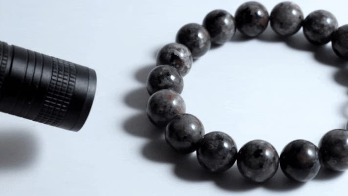 このブレスレットの石はアメリカのミシガン州で2017年に発見されたユーパーライトに酷似も、こちらは中国国内の鉱物マーケットで出回っていた新種。