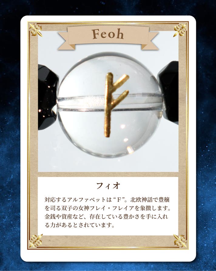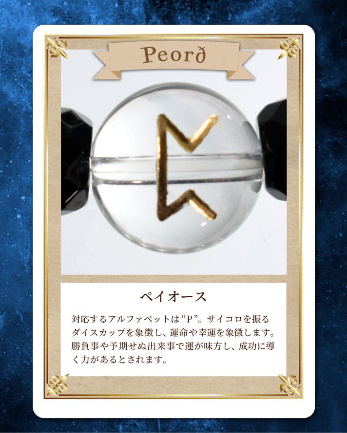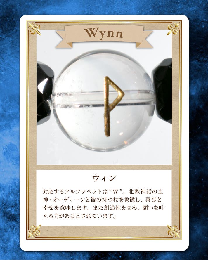 - ゲルマン民族の古代文字で幸運を招く「ルーン文字」をロッククリスタルに刻印。