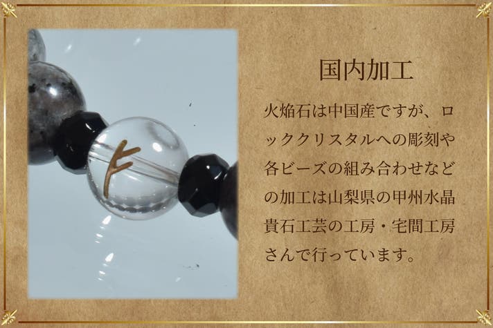 材質:火焔石、ロッククリスタル、ブラックオニキス、シリコンゴム