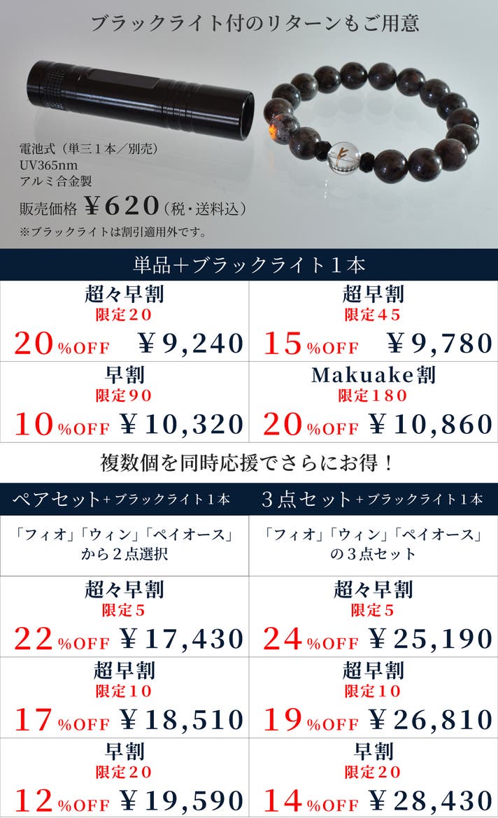 【Makuake割】火焔石ブレスレット5%OFF+ブラックライト1本