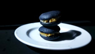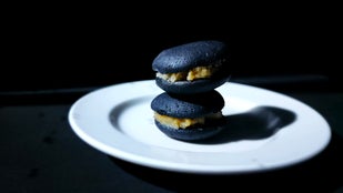 バター、小麦粉、砂糖、卵黄、植物炭末色素、カシューナッツ、シロップ、香料
