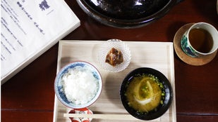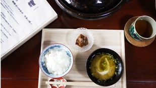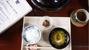 お米を炊く・素麺を具としてお味噌汁をつくる・奈良漬を小皿に移す・急須にほうじ茶を1パック入れる・出来上がったご飯と味噌汁を桐箱に乗せてテーブルに運ぶ