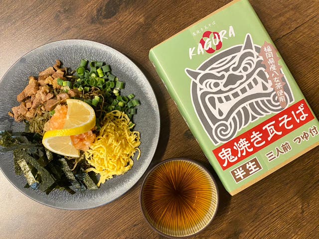 ・鬼焼き瓦そばセット(八女茶そば100g×3玉、つゆ付き)