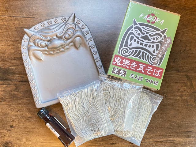 鬼焼き瓦そばセット(3人前)、城島鬼瓦プレート付き