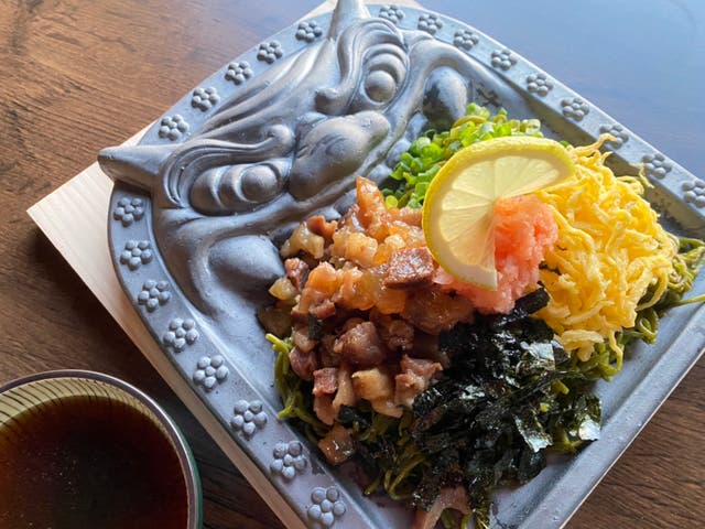 その瓦そばを福岡県太宰府市で県産にこだわり、400年以上続く伝統工芸の城島鬼瓦を使用しています。