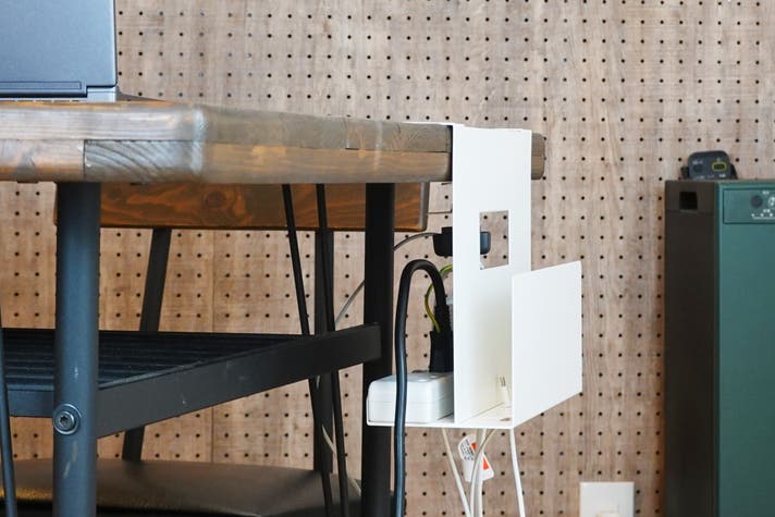 テーブルタップも一緒に収納できるため、床にコードが散らかる心配がなく、見た目もすっきりします。