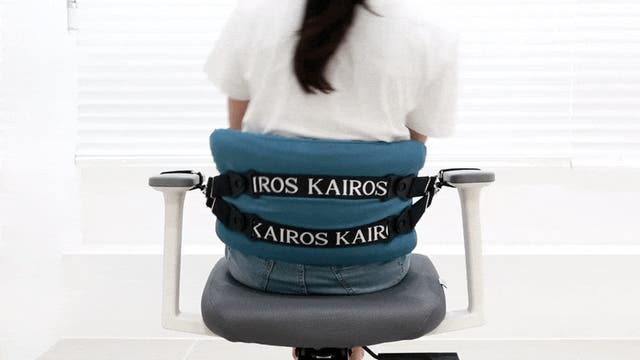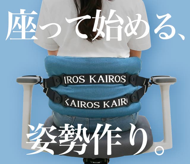カイロス「無重力クッション」は姿勢の変化に対応する、特許技術の新しいタイプの姿勢補正サポーターです。腰椎を正しくすることで腰から首まで楽に!