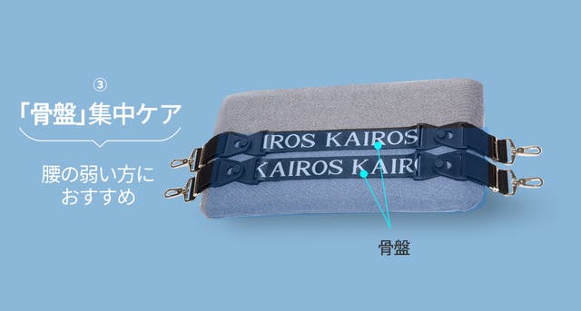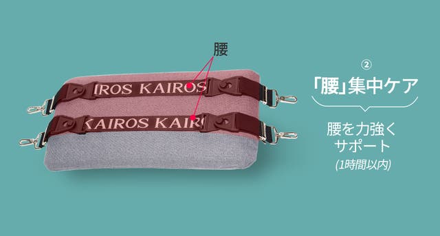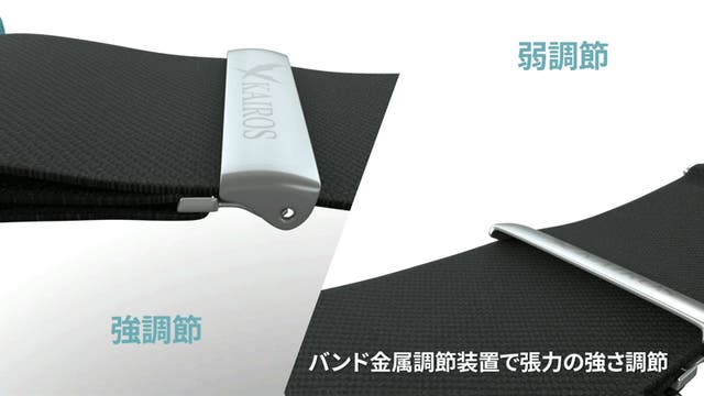 カイロス「無重力クッション」の根幹は専用バンド。弾性があり、姿勢の変化にも柔軟に対応します。