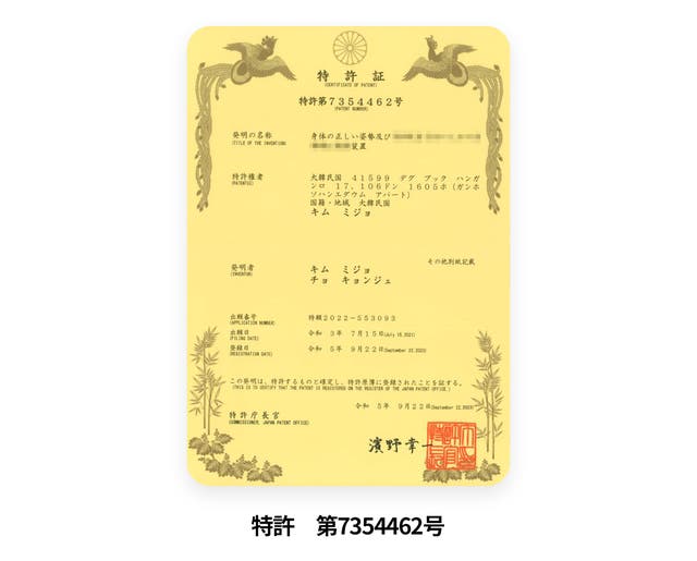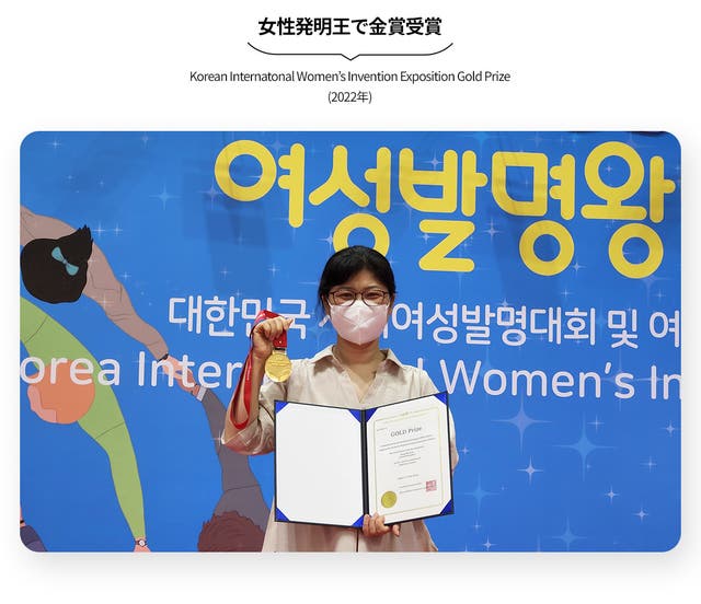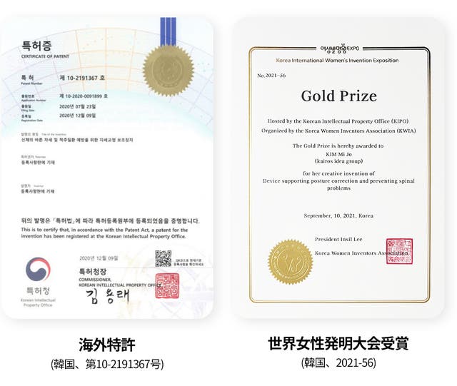 開発国の韓国でも特許を取得し、また世界女性発明大会で金賞を受賞しました。このような特許と受賞の秘訣はなんと言っても専用の張力バンド!