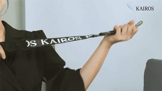 ②ロゴ付きの部分(ローマ字「KAIROS」が見えるように)を内側のリングに入れて、引っ張ります。