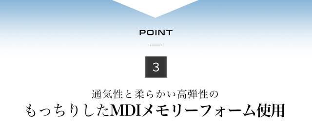 また、MDIメモリーフォームをカバーする3Dメッシュは弾性があり、腰の衝撃をさらに和らげます。また、優れた通気性で快適な使用が可能。