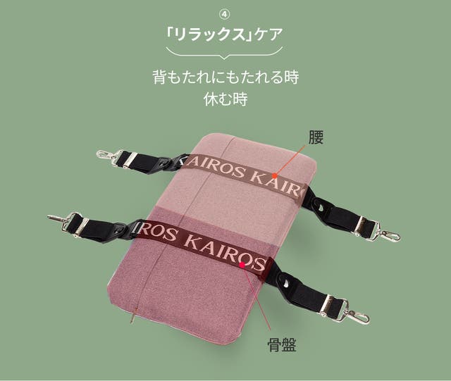 また、バンドの位置を変えることで、腰、骨盤、背中各部位を集中ケアすることもできます。