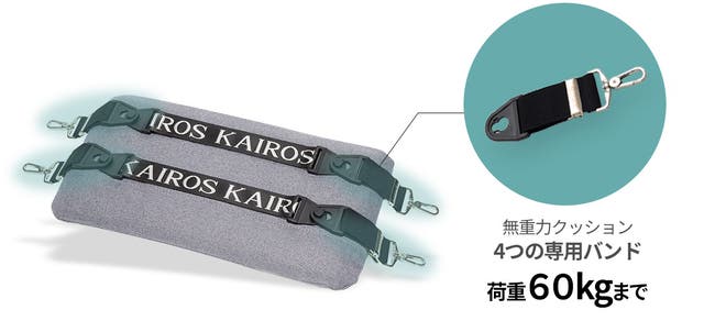 カイロス「無重力クッション」の専用バンドは1つあたり15kgまで※の荷重を耐えられるよう、設計されています。