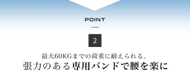 4つのバンドで構成されていて、60kgまでの荷重にも耐えられるため、腰がゆるがることなく安定的に座り続けられます。