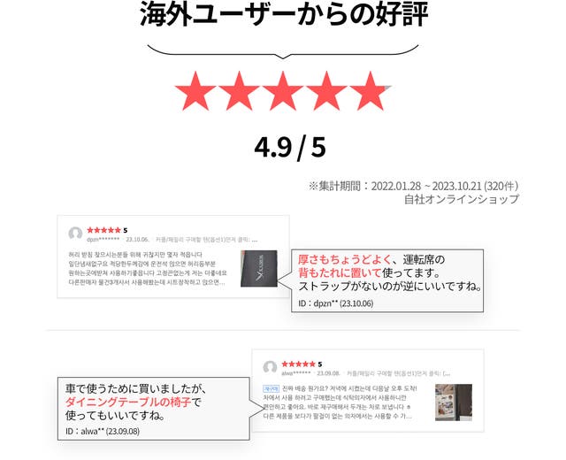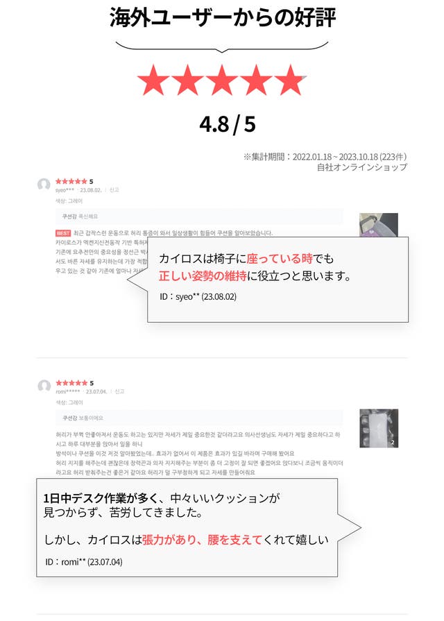 発売元の韓国でも腰や姿勢でお悩みのユーザーからたくさんの好評をいただいております。