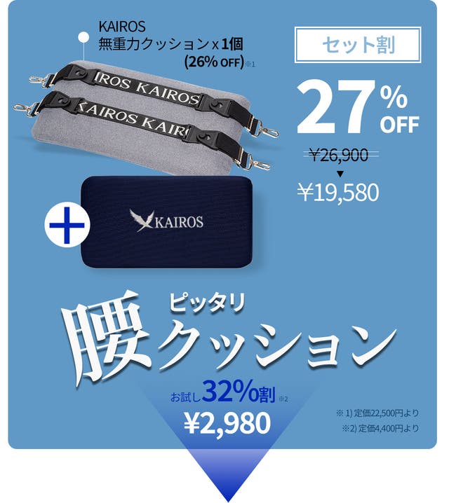 【セット割】カイロス「無重力クッション」x 1、「腰ピッタリクッション」x 1