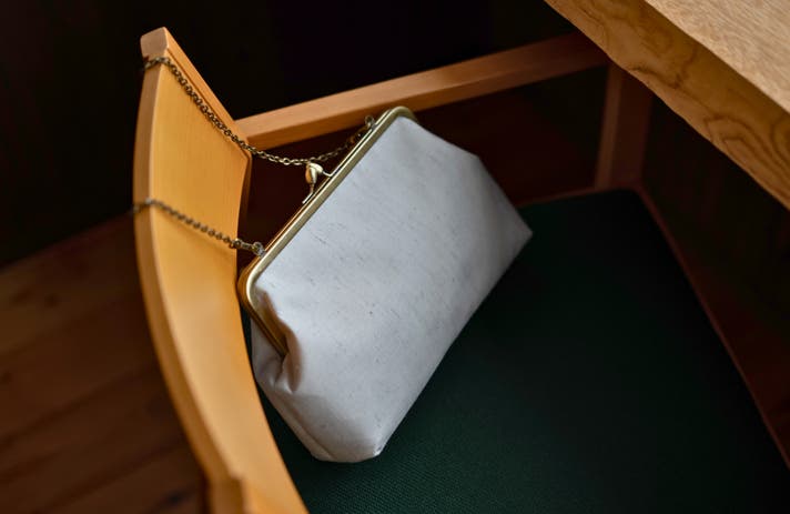 その個性をそのまま活かして、がまぐちバッグというかたちにしました。