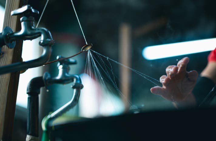 蚕の個性がそのまま糸に表れ、一本の糸にも針がささるような生命力があります。