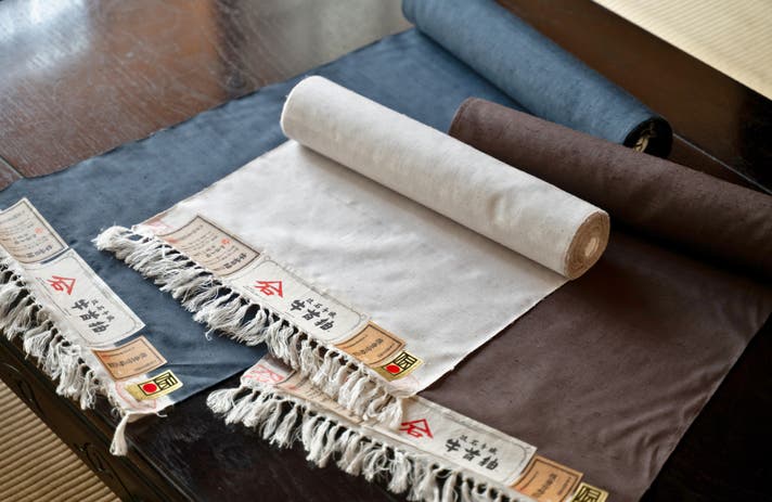 このインパクトのある名前は、着物のために織られてきた上質な絹の生地のこと。軽くて丈夫で美しい艶と、表情豊かなフシが特徴で、着物愛好家からは「一生に一枚は牛首紬がほしい」という声があがる着物です。