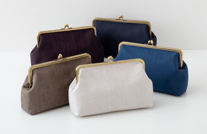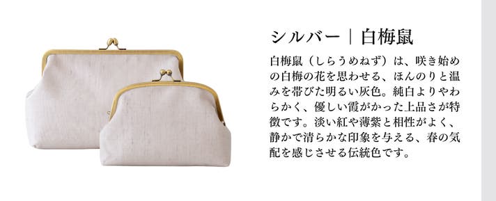 日常づかいしやすく、改まった場所にも使っていただけるがまぐちバッグを大小揃えました。