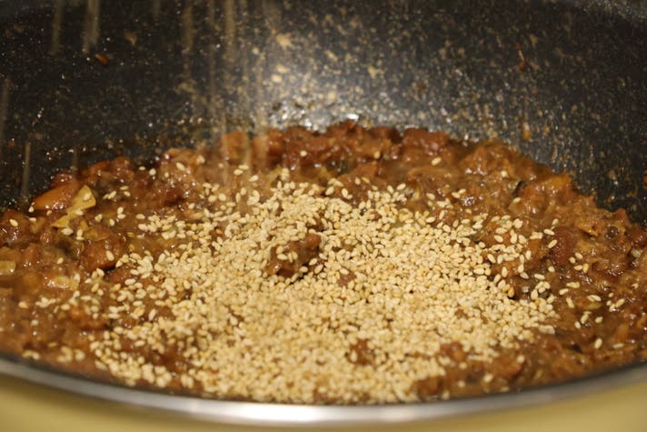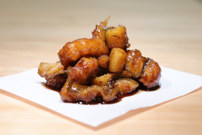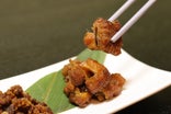 小骨は乾煎りしてカリッと香ばしく、皮にはゼラチン質のうまみが詰まっており、ごまと一緒に混ぜることで香ばしさも倍増。