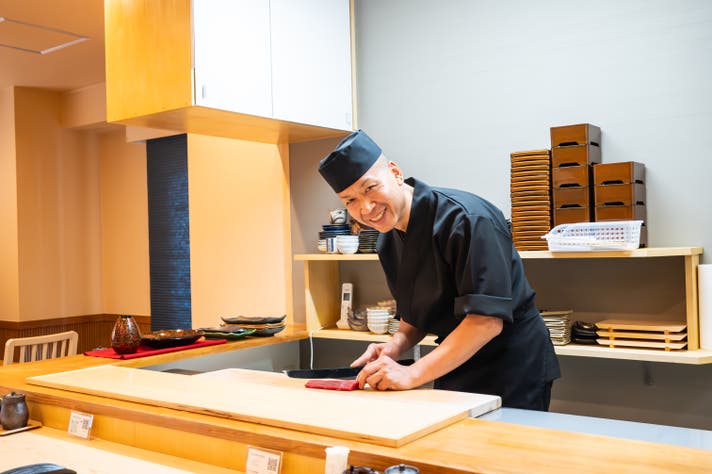 1972年生まれ、東京都出身。寿司店に約25年間勤務し、その後は市場での魚の目利きを学び、昨年6月に独立・開業いたしました。
