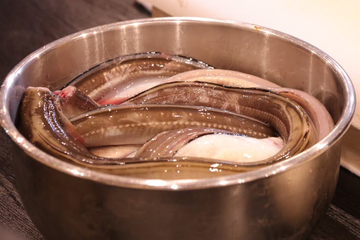 私たちの穴子は、朝まで生きていた穴子を仕入れ、加工しています。