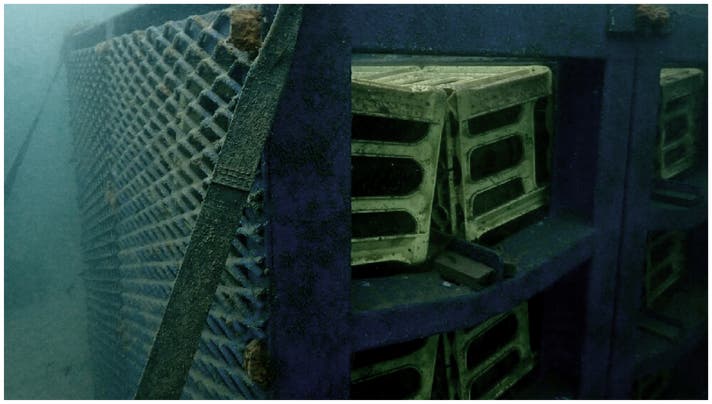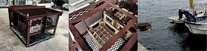 今回のプロジェクトにあたり、海底熟成調査を実施した際には、新たな発見も。海底に設置したコンテナの瓶と瓶の隙間に、小魚や貝などが住みつき、小さな漁礁となっていたのです。
