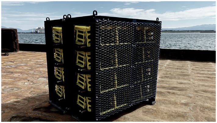 さらに本格的な事業化に向けて、貯蔵本数を拡大した「事業用コンテナ」を開発。土台部分には、超高強度繊維補強コンクリートを採用し、耐久性・安定性・構造美を兼ね備えた設備へと進化させました。