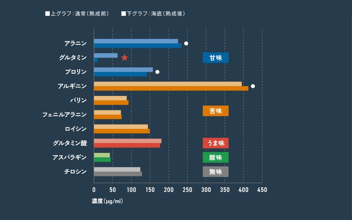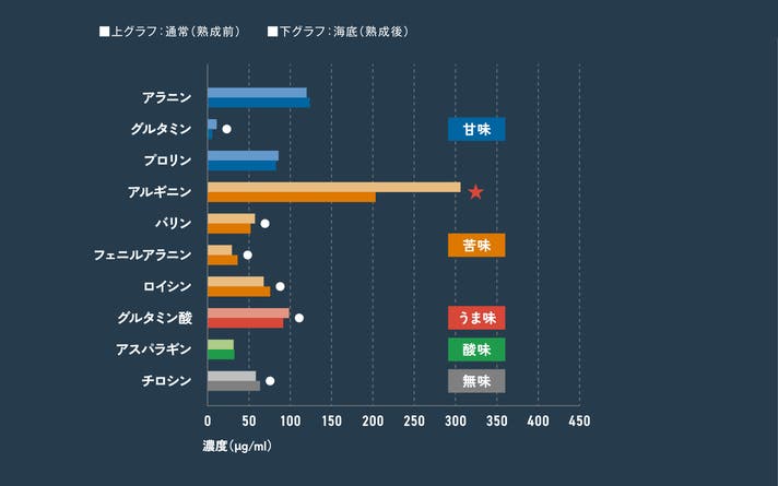 熟成後は苦味成分の「アルギニン」が大幅に減少し、まろやかな味わいに。
