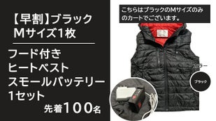 フード付きヒートベストのMサイズは先着限定数で応援購入できますのでお早めに!