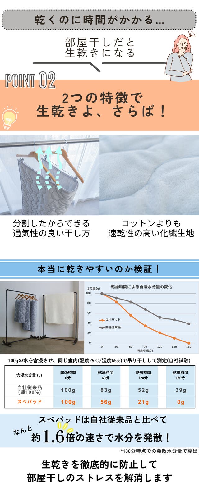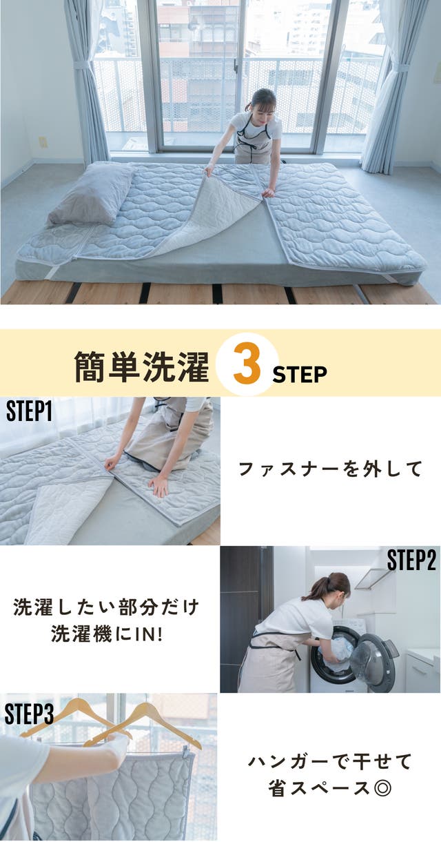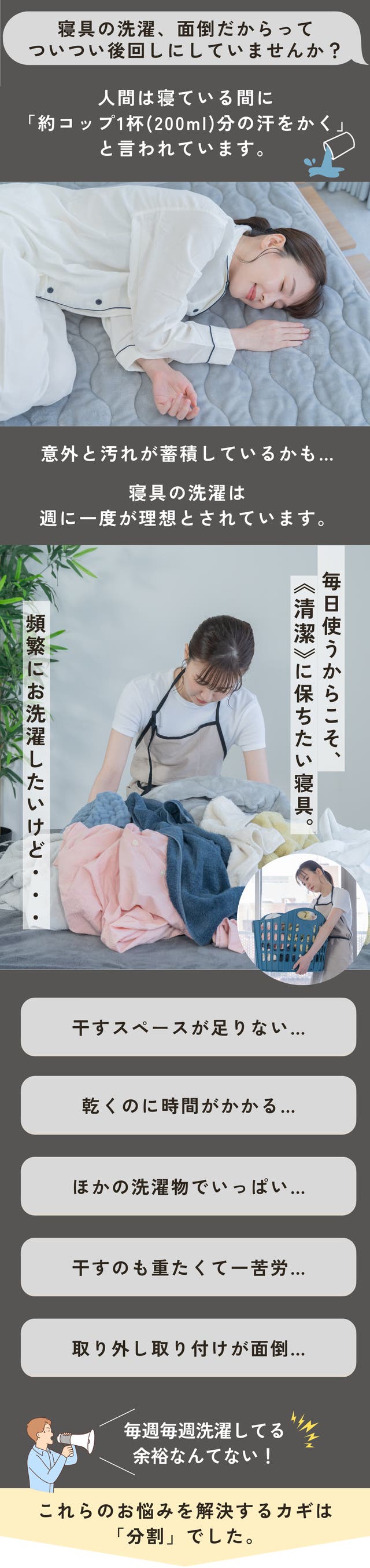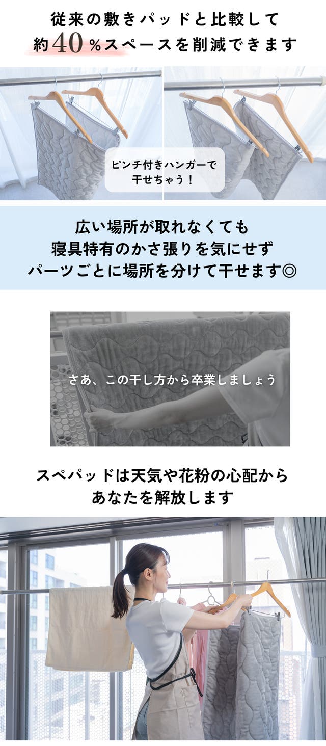 今回はそんなお悩みに応えるべく開発された、分割して洗えて省スペースで干せる敷きパッド、『スペパッド』のご紹介です。
