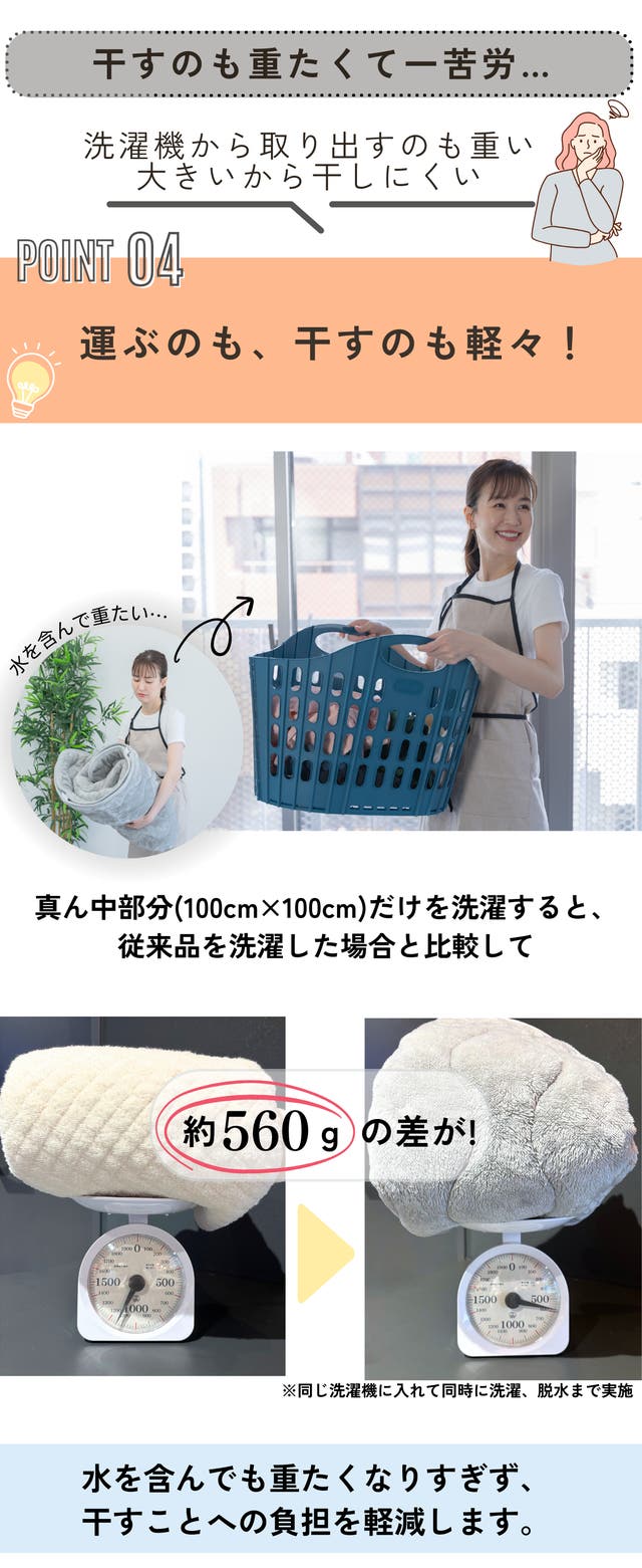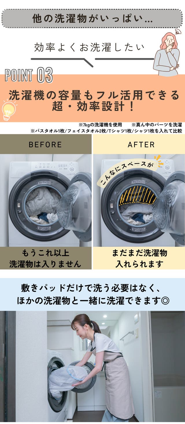 - 汚れが気になるパーツと他の洗濯物を一緒に洗えて超・効率的!洗濯機の容量をフル活用できます。