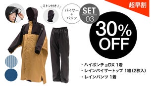 例えば、現在サイクルモード ハイポンチョをご活用いただいている方は、今回ハイポンチョDXの「単品割」と、この「レインパンツ2着セット割」の2件をご購入いただけば、2着とも上下セットでご利用いただくことが可能となります。