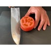 包丁に透けるほどのトマト極薄スライスもスイスイでカットできます。