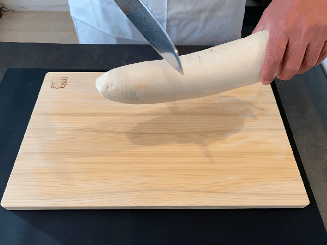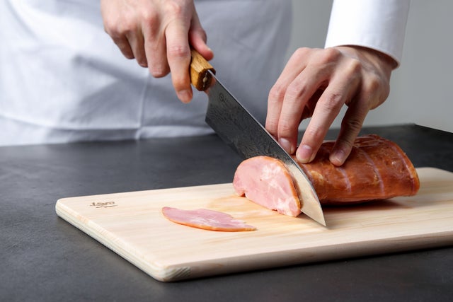 堺包丁はリピート率が高く周りのシェフ達がこぞって使っているので信頼度は折り紙付きです。「鍛冶の匠」は実際に調理に使用してみると、野菜、肉、魚どれを切ってもサクサク軽い力で切れ、プロレベルでも舌を巻くクオリティでした。刀身の模様も高貴な感じで見た目もカッコイイ。一家に一本持っていて損はない、一生モノになると思いますね。」