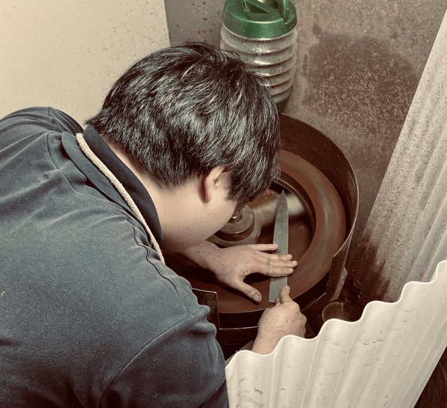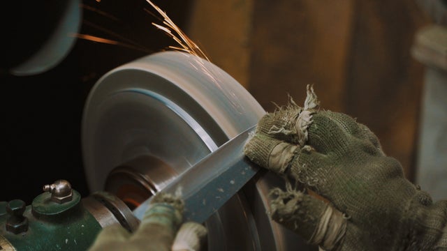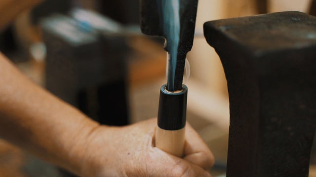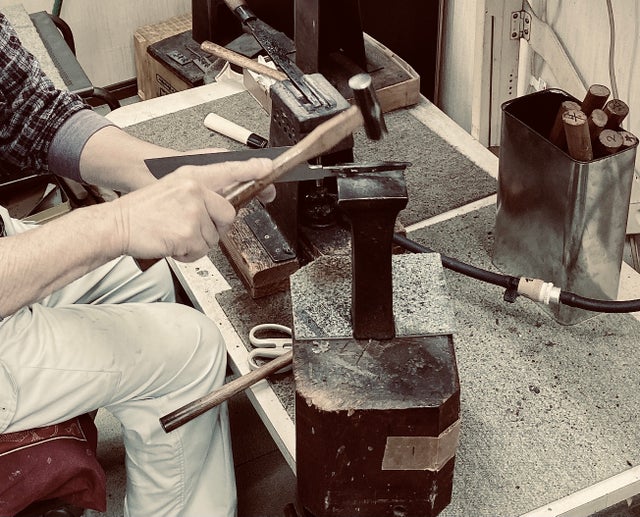 堺の包丁製造では、伝統的に、鍛冶・研ぎ・柄付けの3つ工程がそれぞれ独立し、各工程を別の職人が行います。