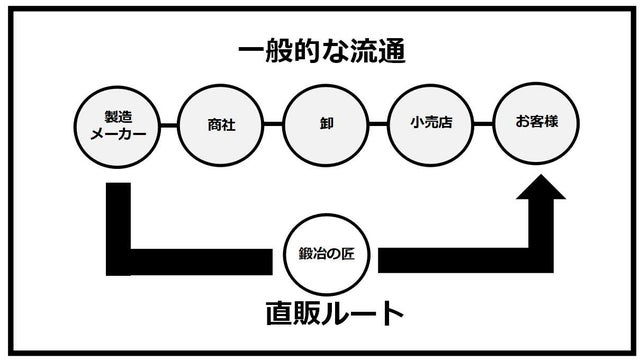 「鍛冶の匠」プロジェクトでは中間業者を一切排除することで価格を抑えたリーズナブルな直販価格にて提供することが可能になりました。