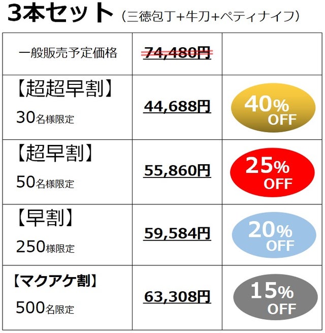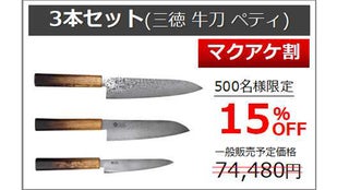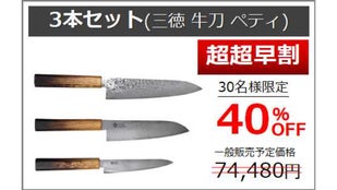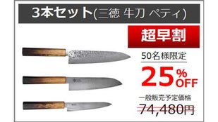 【超超早割 30人限定】3本セット(三徳包丁、牛刀、ペティナイフ)