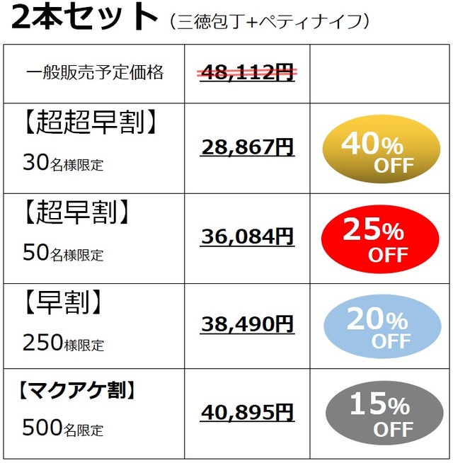 【超超早割 30人限定】2本セット(三徳包丁、ペティナイフ)