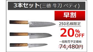 【早割 250人限定】3本セット(三徳包丁、牛刀、ペティナイフ)