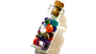 約14mm×35mmのビンの中に、カケラ宝石を詰めてお送りさせていただきます。
