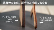 ●流通している一般的な犬服用ハンガーは約5mm、『カケルタ』は約9mmの厚みで作られているため軽すぎず、安定して洋服を吊るすことができます。