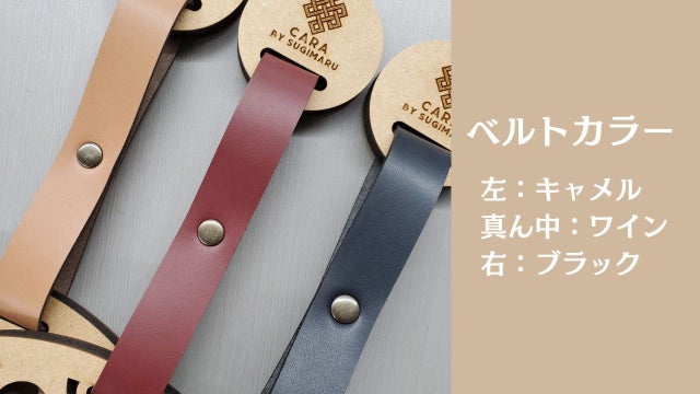 ベルトは合皮を使っており、キャメル・ワイン・ブラックの3種類からお選びいただけます。